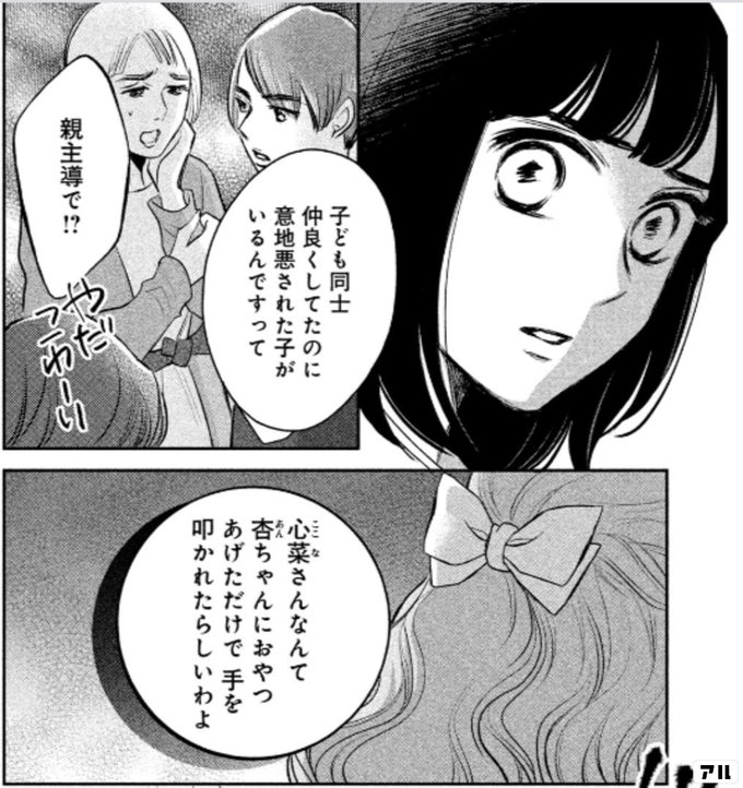 子ども同士仲良くしてたのに意地悪された子がいるんですって心菜さんなんて杏ちゃんにおゃつあげただけで 手を 叩かれたらしいわよ親主導で2 おちたらおわり アル